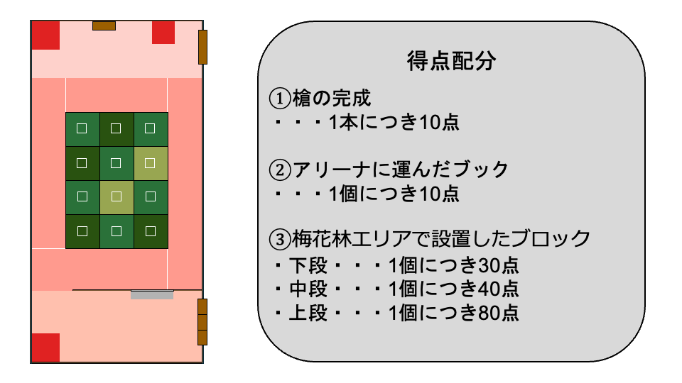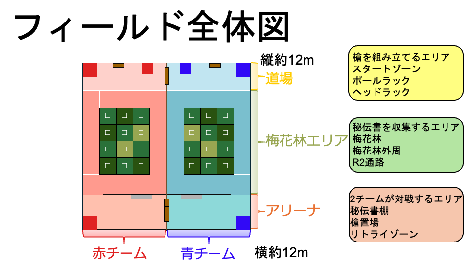 いかがでしたでしょうか?今年のルールは、2台の役割分担(R1/ R2)に加え、梅花林での回収・アリーナでの配置・槍を使った攻防が絡み合うため、非常に戦略性の高い競技になっています。