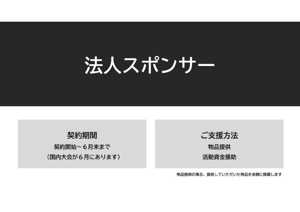 法人様からのご支援は、「法人スポンサー制度」に基づくリターン活動をさせていただきます。